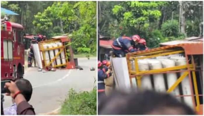 തിരുവനന്തപുരത്ത് സിഎൻജി ഗ്യാസ് ലോറി മറിഞ്ഞ് അപകടം; ഗ്യാസ് ചോർച്ച മൂലം വാഹന ഗതാഗതത്തിൽ നിയന്ത്രണം