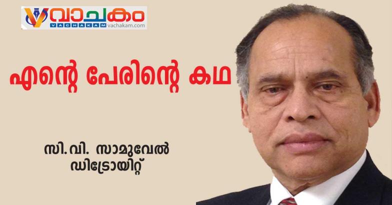 സാമുവൽ. എന്റെ മുഴുവൻ പേര് കേൾക്കുമ്പോൾ, എന്റെ വീട്ടുപേരിന്റെ പ്രതിധ്വനി ഞാൻ കേൾക്കുന്നു, ഞങ്ങളുടെ പൂർവ്വിക വീടിന്റെ അടയാളമായ ചക്കുപറമ്പിൽ; എന്റെ പിതാവിന്റെയും മുത്തച്ഛന്റെയും പേര്, വറുഗീസ്, കുടുംബപരമ്പരയുടെ ഭാഗമായി തുടർന്നുവരുന്നു. വോഗീസ് (എന്റെ പിതാവിന്റെ പിതൃഭാഗത്ത് നിന്ന്) എന്ന പേര് ഇരുനൂറ് വർഷത്തിലേറെയായി ഞങ്ങളുടെ കുടുംബത്തിൽ ഉണ്ട്. പരമ്പരാഗതമായി, കുടുംബത്തിലെ ആദ്യജാതനായ ആൺകുട്ടിക്ക് പിതാവിന്റെ അവസാന നാമം കുടുംബനാമമായി ലഭിക്കും. ബാക്കിയുള്ള കുട്ടികൾക്ക് അവരുടെ പിതാവിന്റെ പേര് മധ്യനാമമായി ലഭിക്കും. എന്റെ ബൈബിൾ പേര് സാമുവൽ എന്നാണ്. എല്ലാം ചേർത്താൽ, ചക്കുപറമ്പിൽ വറുഗീസ് സാമുവൽ. 1971ൽ ഞാൻ യുഎസിൽ എത്തിയതിനു ശേഷമാണ് ഞാൻ എന്റെ മുഴുവൻ പേര് ഉപയോഗിക്കാൻ തുടങ്ങിയത്. എന്റെ ദൈനംദിന ജീവിതത്തിൽ, ആരും എന്നെ മുഴുവൻ പേര് വിളിക്കാറില്ല. എന്റെ മുഴുവൻ പേര് ചുരുക്കിയത് 'സി.വി. സാമുവൽ' എന്നാണ്. ലളിതവും ഉച്ചരിക്കാൻ എളുപ്പവുമാണ്. എന്റെ സ്കൂളിലും പള്ളി രേഖകളിലും സി.വി. സാമുവൽ എന്നാണ് പേര്.