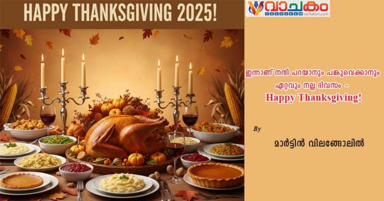 നന്ദി പറയുന്നതിന്റെയും പങ്കിടലിന്റെയും മൂല്യങ്ങൾ ഓർമ്മിപ്പിക്കുന്ന ദിനമായി താങ്ക്സ് ഗിവിംഗ് കുടുംബങ്ങൾക്കും സമൂഹങ്ങൾക്കും സന്തോഷവും ഐക്യവും നിറഞ്ഞ ആഘോഷമായിത്തീരും.