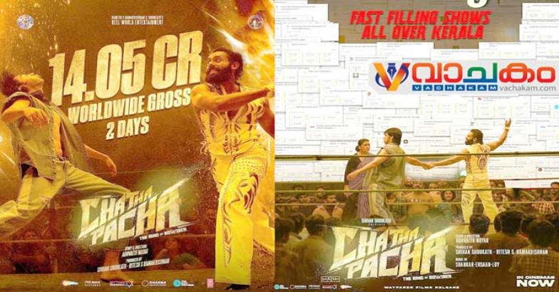 മലയാള സിനിമയിലെ ആദ്യത്തെ മുഴുനീള WWE സ്റ്റൈൽ ആക്ഷൻ കോമഡി ചിത്രമായി എത്തിയ ചത്താ പച്ച റിങ് ഓഫ് റൗഡീസ് ബോക്സ് ഓഫീസിൽ സൂപ്പർ വിജയം തുടരുന്നു. 2 ദിനം കൊണ്ട് ചിത്രം നേടിയ ആഗോള ഗ്രോസ്സ് കളക്ഷൻ 14.05 കോടി രൂപ. 7 കോടി 73 ലക്ഷമാണ് ചിത്രം ആദ്യ ദിനം സ്വന്തമാക്കിയിരുന്നത്. ആദ്യ വീക്കെൻഡിൽ വമ്പൻ കലക്ഷൻ ലക്ഷ്യമിട്ടാണ് ചിത്രം കുതിക്കുന്നത്. ആദ്യ ഷോ മുതൽ ഗംഭീര പ്രേക്ഷക പ്രതികരണം നേടിയ ചിത്രം, കേരളത്തിന് അകത്തും പുറത്തും മികച്ച കലക്ഷൻ ആണ് നേടുന്നത്. ലോകമെമ്പാടും നിറഞ്ഞ സദസ്സുകളിലാണ് ചിത്രം പ്രദർശിപ്പിക്കുന്നത്.