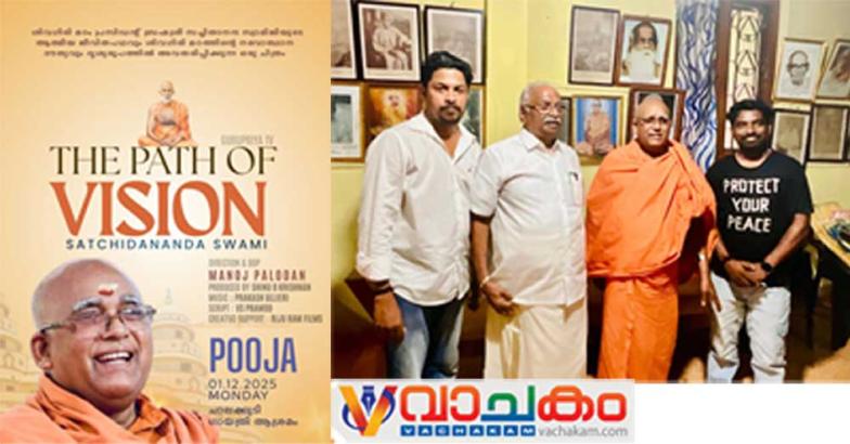 ശിവഗിരി മഠം പ്രസിഡന്റ് ബ്രഹ്മശ്രീ. സച്ചിദാനന്ദ സ്വാമിയുടെ ആത്മീയ ജീവിതപഥവും ശിവഗിരിമഠത്തിന്റെ നവോത്ഥാന ദൗത്യവും ദൃശ്യവത്കരിക്കുന്ന ഡോക്യുമെന്ററി 'The Path of Vision' തുടക്കമായി. ചാലക്കുടി ഗായത്രി ആശ്രമത്തിൽ വച്ച് നടന്ന പൂജ വേളയിൽ ബ്രഹ്മശ്രീ സച്ചിദാനന്ദ സ്വാമി സ്വിച്ച് ഓൺ നിർവഹിച്ചു ചിത്രീകരണം ആരംഭിച്ചു. മുഖ്യാഥിതിയായി നിർമ്മാതാവ് ഗോകുലം ഗോപാലൻ പങ്കെടുത്തു. സിനിമാ സംവിധായകൻ മനോജ് പാലോടൻ സംവിധാനം നിർവഹിക്കുന്ന