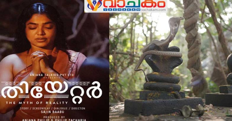 റിമ കല്ലിങ്കല്ലിനെ പ്രധാന കഥാപാത്രമാക്കി സജിൻ ബാബു സംവിധാനം ചെയ്യുന്ന 'തിയേറ്റർ: ദി മിത്ത് ഓഫ് റിയാലിറ്റി' ഒക്ടോബർ 16ന് തിയേറ്ററുകളിലേക്ക് എത്തുകയാണ്. രാജ്യാന്തര ചലച്ചിത്രമേളകളിലെ പ്രദർശനത്തിന് ശേഷം തിയറ്റർ റിലീസിനെത്തുന്ന ചിത്രത്തിന്റെ ചില ഞെട്ടിക്കുന്ന ദൃശ്യങ്ങൾ പുറത്തു വിട്ടിരിക്കുകയാണിപ്പോൾ സംവിധായകൻ. സിനിമയുടെ ചിത്രീകരണ വേളയിൽ ലൊക്കേഷനായ സർപ്പക്കാവിലേക്ക് എത്തിയ യഥാർത്ഥ സർപ്പത്തിന്റെ വീഡിയോയാണ് സംവിധായകൻ പുറത്തു വിട്ടിരിക്കുന്നത്. വിശ്വാസങ്ങൾ, ആചാരങ്ങൾ, മിത്ത് എന്നിവയുമായൊക്കെയായി ബന്ധപ്പെട്ട് പുറത്തിറക്കിയ ചിത്രത്തിൽ സർപ്പക്കാവും ഒരു പ്രധാന ലൊക്കേഷനാണ്. അതിനായി സംവിധായകന്റെ നേതൃത്വത്തിൽ ആർട്ട് ഡയറക്ടർ നിർമ്മിച്ച താൽക്കാലിക സർപ്പക്കാവിലേക്കാണ് സർപ്പം വന്നത്. ഇതൊരു അത്ഭുതകരമായ സംഭവമായാണ് പലരും ഇതിനെപ്പറ്റി സൂചിപ്പിക്കുന്നത്.