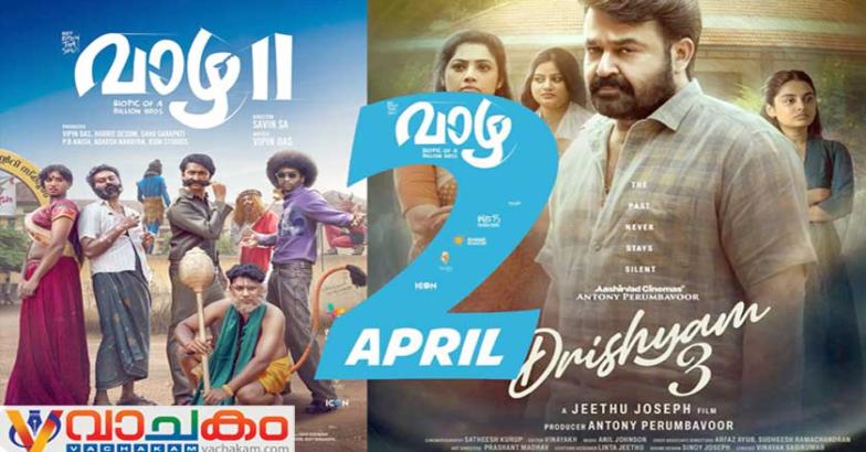 സോഷ്യൽ മീഡിയയിലെ യുവതാരങ്ങൾക്ക് പ്രാധാന്യം നൽകി ഒരുക്കിയ സൂപ്പർ ഹിറ്റ് 'വാഴ' എന്ന ചിത്രത്തിന്റെ രണ്ടാം ഭാഗമായ 'വാഴ II ബയോപിക് ഓഫ് ബില്യൺ ബ്രോസ് ' എന്ന ചിത്രത്തിന്റെ റിലീസ് തിയതി പ്രഖ്യാപിച്ചു. ഏപ്രിൽ 2നാണ് ചിത്രം തിയേറ്ററുകളിൽ എത്തുന്നത്. ജീത്തു ജോസഫ് മോഹൻലാൽ ടീമിന്റെ ദൃശ്യം 3യും ഏപ്രിൽ രണ്ടിനാണ് പുറത്തിറങ്ങുന്നത്. ജോർജുകുട്ടിയോട് ചെക്ക് വയ്ക്കാൻ വാഴ പിള്ളേർ എത്തിയോ..?, വാഴ രണ്ടും ദൃശ്യം മൂന്നും ഏറ്റു മുട്ടുന്നു.. തുടങ്ങിയ ട്രോളുകളും ചർച്ചകളും റിലീസ് തിയതി പ്രഖ്യാപിച്ചതോടെ സോഷ്യൽ മീഡിയയിൽ നിറയുന്നുണ്ട്.