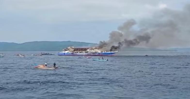 പ്രാദേശിക സമയം ഉച്ചയ്ക്ക് 12.00 മണിയോടെയാണ് കപ്പലില് തീ പടര്ന്നത്. ഫെറിയുടെ മേല് ഭാഗത്തുള്ള ഡെക്കുകളില് തീ വേഗത്തില് പടര്ന്നതോടെ യാത്രക്കാര് പരിഭ്രാന്തരായി. സോഷ്യല് മീഡിയയില് പോസ്റ്റ് ചെയ്ത വീഡിയോകളില് ഡസന് കണക്കിന് യാത്രക്കാര് പ്രക്ഷുബ്ധമായ വെള്ളത്തിലേക്ക് ചാടുന്നത് കാണിക്കുന്നു. പലരും ഓറഞ്ച് നിറമുള്ള ലൈഫ് ജാക്കറ്റുകള് ധരിച്ചിരുന്നു.