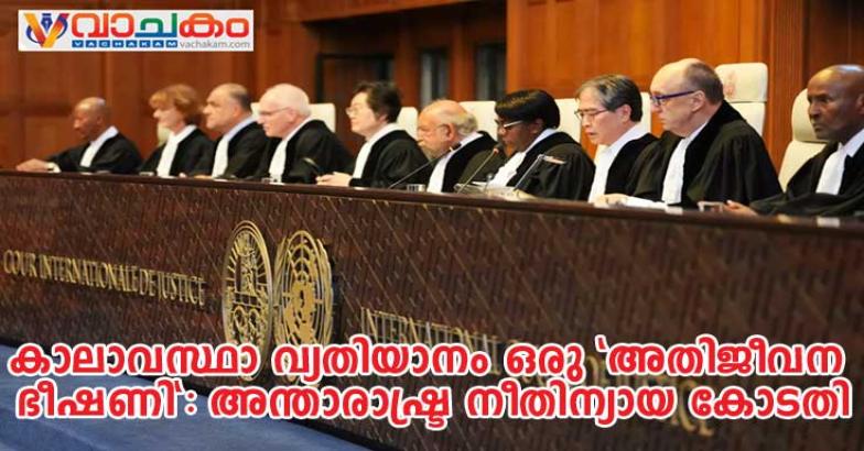 ഹേഗ്: കാലാവസ്ഥാ വ്യതിയാനം ഒരു 'അതിജീവന ഭീഷണി' ആണെന്നും ഇത് തടയുന്നതിനുള്ള നിയമപരമായ ബാധ്യത ധനിക രാജ്യങ്ങൾക്കുണ്ടെന്നും ഐക്യരാഷ്ട്രസഭയുടെ ഉന്നത നീതിപീഠമായ അന്താരാഷ്ട്ര നീതിന്യായ കോടതി (ICJ) വിധിച്ചു. യുദ്ധവും അതിർത്തി തർക്കങ്ങളും പോലുള്ള കാര്യങ്ങൾ കൈകാര്യം ചെയ്യുന്ന കോടതി ആദ്യമായാണ് ഇത്തരത്തിൽ ഒരു പാരിസ്ഥിതിക പ്രശ്നത്തിൽ വിധി പ്രഖ്യാപിക്കുന്നത്.