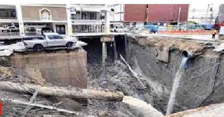 ബാങ്കോക്ക്: റോഡ് തകര്ന്ന് ഭീമന് ഗര്ത്തം രൂപപ്പെട്ടു.