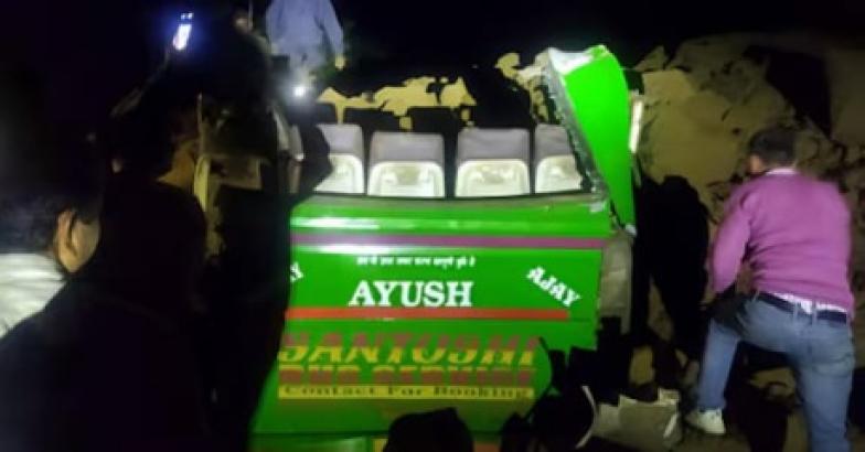 ബസിനു മുകളിലേക്ക് മലയിടുക്കിൽ നിന്ന് മണ്ണും പാറക്കെട്ടുകളും പതിക്കുകയായിരുന്നു.ബസിന്റെ ഒരു ഭാഗം പൂർണമായും തകർന്ന നിലയിലാണ്.നിലവില് രക്ഷാപ്രവര്ത്തനം പുരോഗമിക്കുകയാണ്.ഒരു പെൺകുട്ടി ഉൾപ്പെടെ നാലു പേരെ പുറത്തെടുത്തതായാണ് രക്ഷാപ്രവർത്തകർ പറയുന്നത്.