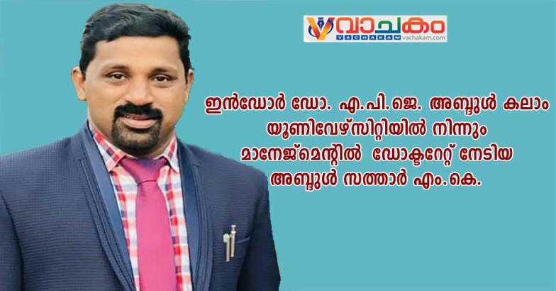 ഇൻഡോർ ഡോ. എ.പി.ജെ. അബ്ദുൾ കലാം യൂണിവേഴ്സിറ്റിയിൽ നിന്നും മാനേജ്മെന്റിൽ ഡോക്ടറേറ്റ് നേടി അബ്ദുൾ സത്താർ എം.കെ.