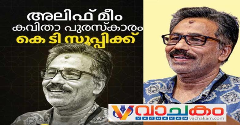 കോഴിക്കോട് : മർകസ് നോളജ് സിറ്റിയിലെ വേൾഡ് ഇൻസ്റ്റിറ്റിയൂട്ട് ഫോർ റിസേർച്ച് ഇൻ അഡ്വാൻസ്ഡ് സയൻസസ് (വിറാസ്) ഏർപ്പെടുത്തിയ 'അലിഫ് മീം കവിതാ പുരസ്കാര്' ജേതാവായി കവി കെ.ടി. സൂപ്പിയെ തിരഞ്ഞെടുത്തതായി സംഘാടകർ വാർത്താസമ്മേളനത്തിൽ അറിയിച്ചു.
