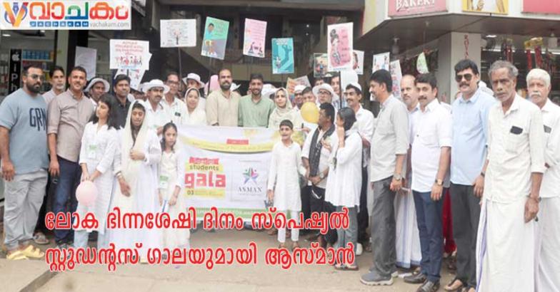 താമരശ്ശേരി: ലോക ഭിന്നശേഷി ദിനത്തോടനുബന്ധിച്ച് സ്പെഷ്യൽ സ്റ്റുഡന്റസ് ഗാലയുമായി പൂനൂർ ആസ്ഥാനമായി പ്രവർത്തിക്കുന്ന ആസ്മാൻ സെന്റർ ഫോർ ഹാപ്പിനസ്. പരിപാടിയുടെ ഭാഗമായി ക്യാമ്പസിലെ വിദ്യാർത്ഥികളും അധ്യാപകരും എബിലിറ്റി ഘോഷയാത്രയും ബോധവത്കരണവും നടത്തി. ഭിന്നശേഷി വിദ്യാർത്ഥികളുടെ ദഫ് പ്രദർശനവും ഫ്ളവർപ്ലക്കാർഡ് ഷോ, ബലൂൺ റൈസിംഗ് തുടങ്ങിയവയും ഘോഷയാത്രയെ വർണാഭമാക്കി.