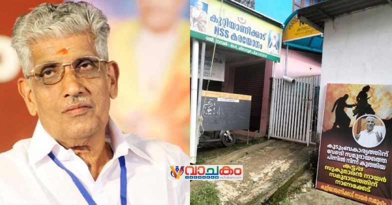 'കുടുംബകാര്യത്തിനായി സമുദായത്തെ പിന്നില് നിന്ന് കുത്തിയ കട്ടപ്പ'യെന്നാണ് കുറ്റിയായണിക്കാട് സ്ഥാപിച്ച ഫ്ളെക്സില് വിമർശിക്കുന്നു. സുകുമാരന് നായര് സമുദായത്തിന് നാണക്കേടാണെന്നും പോസ്റ്ററിലുണ്ട്.