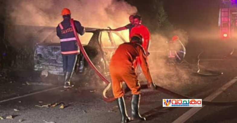 ദർശനത്തിനായി പോയവരുടെ വാഹനം ആണ് പമ്പ ചാലക്കയത്തിന് സമീപം വെച്ച് തീപിടിച്ചത്. ഹൈദരാബാദ് സ്വദേശികളാണ് ടാക്സി കാറിൽ ഉണ്ടായിരുന്നത്.
