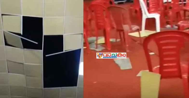 സീലിങ് തകർന്ന് താഴെ ഇരിക്കുന്ന ആളുകളുടെ തലയിലേക്ക് വീഴുകയായിരുന്നു. അപകടസമയത്ത് പ്രദേശത്ത് ശക്തമായ കാറ്റും മഴയും ഉണ്ടായിരുന്നു. കുട്ടികളുടെ തലക്കാണ് പരിക്കേറ്റത്. പരിക്ക് ഗുരുതരമല്ലെന്നാണ് വിവരം.