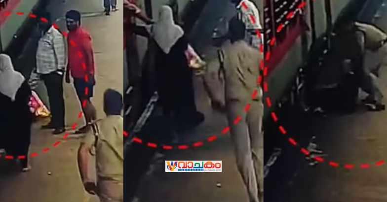 എഎസ്ഐ ഉമേശൻ ഓടിയെത്തിയപ്പോഴേക്കും ട്രെയിനിന് അകത്തുണ്ടായിരുന്ന ആളുടെ കൈ പിടിച്ച് വയോധിക കയറാൻ ശ്രമിക്കുന്നതും പിന്നാലെ നില തെറ്റി വീഴുകയുമായിരുന്നു. ഓടിയെത്തിയ ഉമേശൻ ഇവരെ ട്രെയിന് അടിയിൽ പെടാതെ പ്ലാറ്റ് ഫോമിലേക്ക് വലിച്ച് കയറ്റുന്നത് വീഡിയോയിൽ കാണാം.