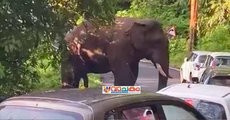 രാത്രി വൈകി ആന വനത്തിലേക്കു പോയതോടെയാണ് ഗതാഗതം പുനരാരംഭിക്കാനായത്.