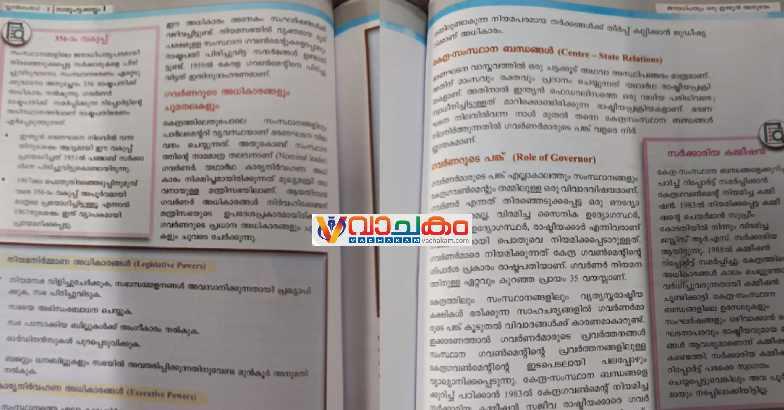 കേന്ദ്രസര്ക്കാരുകള് ഗവര്ണര്മാര് മുഖേന സംസ്ഥാനങ്ങളുടെ ഭരണഘടന അവകാശങ്ങളില് ഇടപെടുന്നു. കേന്ദ്രാവിഷ്കൃത പദ്ധതികളിലും വിഭവങ്ങളുടെ വിതരണത്തിലും രാഷ്ട്രീയം കലരുന്നുവെന്നും പാഠഭാഗത്തുണ്ട്. ഗവര്ണറുടെ പ്രധാന അധികാരങ്ങളും ചുമതലകളും പാഠപുസ്തകത്തില് ഉള്പ്പെടുത്തിയിട്ടുണ്ട്.