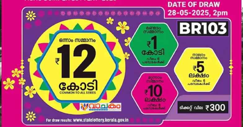 തിരുവനന്തപുരം: 12 കോടി രൂപ ഒന്നാം സമ്മാനം നൽകുന്ന സംസ്ഥാന സർക്കാർ വിഷു ബമ്പർ (ബി ആർ - 103) ഭാഗ്യക്കുറിയുടെ നറുക്കെടുപ്പിന് ഇനി മണിക്കൂറുകൾ മാത്രം.