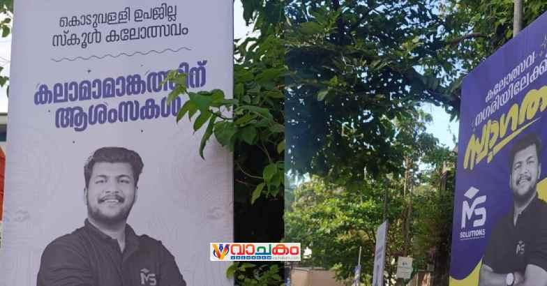 കൊടുവള്ളി മാര്ക്കറ്റ് റോഡില് നിന്ന് ആരംഭിച്ച് ഹൈസ്കൂള് കവാടത്തിനരികെ വരെ ഇരുപത്തിയഞ്ചോളം ഫ്ളക്സ് ബോര്ഡുകളാണ് സ്ഥാപിച്ചത്. കലോത്സവ കമ്മിറ്റിയുടെയോ, നഗരസഭയുടെയോ അനുമതിയില്ലാതെയാണ് സ്കൂള് പരിസരത്തും റോഡിലുമായി ബോര്ഡ് വച്ചിരിക്കുന്നത്.