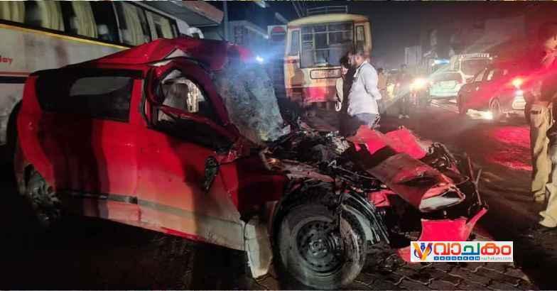 എറണാകുളം ഭാഗത്തേക്കു പോകുകയായിരുന്ന കാർ എതിരെ വന്ന കോട്ടയം–അടൂർ സൂപ്പർ ഫാസ്‌റ്റ് ബസിന്റെ മുൻഭാഗത്തേക്ക് ഇടിച്ചു കയറുകയായിരുന്നു.