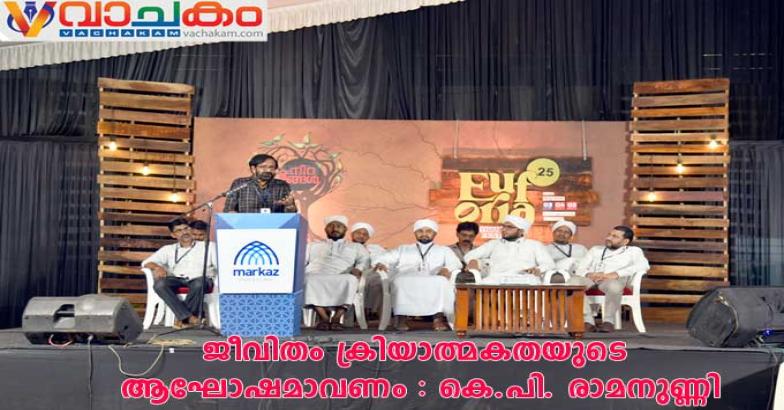 കാരന്തൂർ: ക്രിയാത്മകതയുടെ നിരന്തര ആഘോഷമാവണം മനുഷ്യജീവിതമെന്ന് പ്രശസ്ത സാഹിത്യകാരൻ കെ.പി. രാമനുണ്ണി. മർകസ് റൈഹാൻ വാലി ലൈഫ് ഫെസ്റ്റിവൽ 'യൂഫോറിയ' ഉദ്ഘാടനം ചെയ്ത് സംസാരിക്കുകയായിരുന്നു അദ്ദേഹം. ഒറ്റ നിറങ്ങൾ എന്ന പ്രമേയത്തിൽ പ്രകൃതി, അതിജീവനം, മണ്ണ്, കല, ജീവിതചക്രം തുടങ്ങി വ്യത്യസ്ത ആശയങ്ങൾ ചർച്ച ചെയ്യുന്നതായിരുന്നു ലൈഫ് ഫെസ്റ്റിവൽ. വേഡ് സ്മിത്ത് എഴുത്തു പരിശീലന കളരി, കൃഷിപാഠം, ഫയർ ആൻഡ് സേഫ്റ്റി കോച്ചിംഗ്, കരിയർ ക്ലിനിക്ക് തുടങ്ങി ഒരുമാസം നീണ്ടുനിന്ന വ്യത്യസ്ത അനുബന്ധ പരിപാടികളും ലൈഫ് ഫെസ്റ്റിവലിന്റെ ഭാഗമായി നടന്നു.