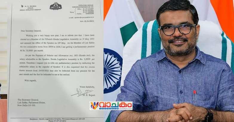 സത്യം ഇതാണ്. നിയമസഭാ സ്പീക്കറായ ശേഷം 10.1.2022 ന് ലോക്സഭാ സെക്രട്ടറി ജനറലിന് ഞാൻ സ്പീക്കറെന്ന നിലയിൽ ശമ്പളം കൈപ്പറ്റുന്ന കാര്യം അറിയിച്ചു കൊണ്ടും, അതു കുറച്ച് എൻ്റെ പെൻഷൻ നിയമ പ്രകാരം പുനർ നിശ്ചയിക്കണമെന്നും, ഏതാനും മാസം അധികമായി എൻ്റെ അക്കൗണ്ടിലേക്ക് ലോക്സഭാ സെക്രട്ടേറിയറ്റിൽ നിന്ന് അയച്ച തുക deduct ചെയ്യണമെന്നും അറിയിച്ച് കത്തയച്ചിട്ടുണ്ട്. അതായത് നാലു വർഷം മുമ്പ് തന്നെ ഞാൻ ഇക്കാര്യം അങ്ങോട്ട് അറിയിച്ചു എന്നർത്ഥം. പിന്നീട് മന്ത്രിയായ ശേഷം ഇക്കാര്യങ്ങൾ ആവർത്തിച്ച് 17.02.2023ന് ഞാൻ വീണ്ടും ലോക്സഭാ സെക്രട്ടേറിയറ്റിന് കത്ത് നൽകി. തുടർന്ന് എൻ്റെ കത്തിൻ്റെ അടിസ്ഥാനത്തിൽ ശമ്പളം കുറച്ച് പെൻഷൻ നിയമപ്രകാരം പുന:ക്രമീകരിച്ചതായും, അതിനു മുമ്പ് നൽകിയ ഏതാനും മാസത്തെ തുക കുറവു ചെയ്തതായും അറിയിച്ച് എനിക്ക് 22.05.23 ന് ലോക്സഭാ സെക്രട്ടേറിയറ്റ് മറുപടിയും നൽകി. അതായത് ഒരു നിയമ ലംഘനവും ഇല്ല എന്നർത്ഥം. രേഖകളെല്ലാം ഇവിടെ പങ്കുവെക്കുന്നു.