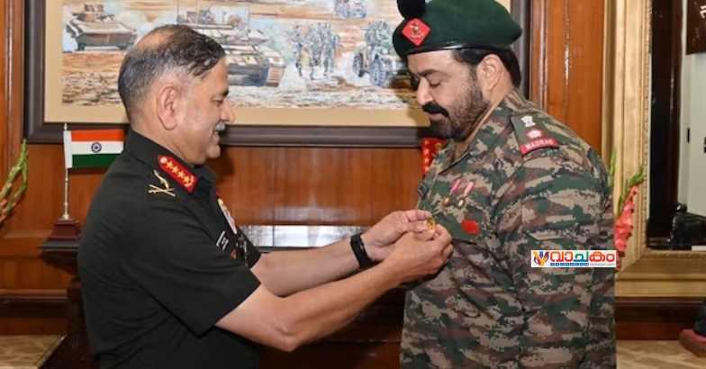 ഡൽഹി: ദാദാ സാഹേബ് ഫാൽക്കെ പുരസ്കാരം നേടിയ, ടെറിട്ടോറിയൽ ആർമിയിൽ ലഫ്.കേണൽ (ഓണററി) കൂടിയായ നടൻ മോഹൻലാലിനെ കഴിഞ്ഞ ദിവസമാണ് കരസേനാ മേധാവി ജനറൽ ഉപേന്ദ്ര ദ്വിവേദി കമൻഡേഷൻ കാർഡ് നൽകി ആദരിച്ചിരുന്നത്.