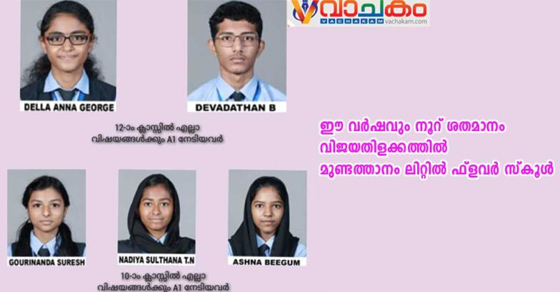 കങ്ങഴ: മുണ്ടത്താനം ലിറ്റിൽ ഫ്ളവർ വിദ്യാനികേതൻ ആന്റ് ജൂനിയർ കോളേജിന് സി.ബി.എസ്.ഇ. 10,12 ക്ലാസ്സ് പരീക്ഷകളിൽ വീണ്ടും നൂറ് ശതമാനം വിജയം. പത്താം ക്ലാസ്സിൽ തുടർച്ചയായ ഇരുപത്തിരണ്ടാം വർഷവും, പന്ത്രണ്ടാം ക്ലാസ്സിൽ തുടർച്ചയായ പതിനാലാം വർഷവുമാണ് സമ്പൂർണ്ണ വിജയം നേടുന്നത്.
