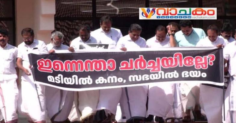 മറുപടി പറയാതെ മുഖ്യമന്ത്രി ഒളിച്ചോടിയെന്നും പ്രതിപക്ഷ നേതാവ് പറഞ്ഞു. സ്പീക്കറുടെ മുന്നില് ‘ഇന്നെന്താ ചര്ച്ചയില്ലേ’ ബാനര് ഉയര്ത്തി അംഗങ്ങള് പ്രതിഷേധിച്ചു. ജീവപര്യന്തം ശിക്ഷ ലഭിച്ച ആൾക്ക് ഒരു മാസത്തിൽ മൂന്നു തവണ പരോൾ നൽകി. ടി പി കേസ് പ്രതികൾക്ക് മൂന്നുവർഷം പരോൾ ലഭിച്ചു. ജയിൽ ഡി ഐ ജിപിയെ സസ്പെൻഡ് ചെയ്യേണ്ടി വന്നു. ഗൗരവമേറിയ കാര്യമാണ് സഭയിൽ ഉന്നയിച്ചത്. എന്നാൽ, ഇതിന് മറുപടി നൽകാതെ മുഖ്യമന്ത്രി ഒളിച്ചോടി.