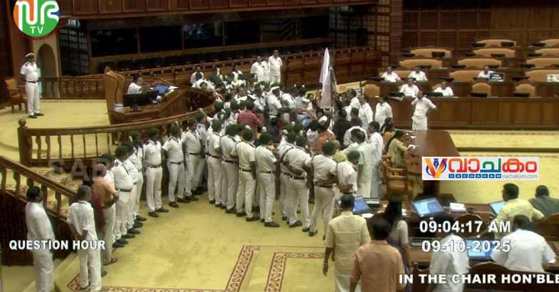 എന്നാൽ ചെയറിനു മുന്നിൽ ബാനർ പിടിക്കരുതെന്ന നിലപാടിലാണ് സ്പീക്കർ. ശബരിമലയിലെ സ്വർണ്ണപ്പാളി വിഷയത്തിലാണ് ദിവസങ്ങളായി സഭയിൽ പ്രതിഷേധം നടക്കുന്നത്.