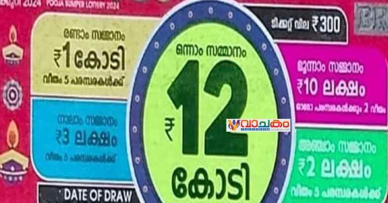 12 കോടി രൂപയാണ് പൂജാ ബമ്പറിന്റെ ഒന്നാം സമ്മാനം. അഞ്ച് പരമ്പരകൾക്ക് ഒരു കോടി വീതമാണ് രണ്ടാം സമ്മാനം. ഓരോ പരമ്പരകൾക്കും രണ്ടു വീതം 10 ലക്ഷമാണ് മൂന്നാം സമ്മാനം.