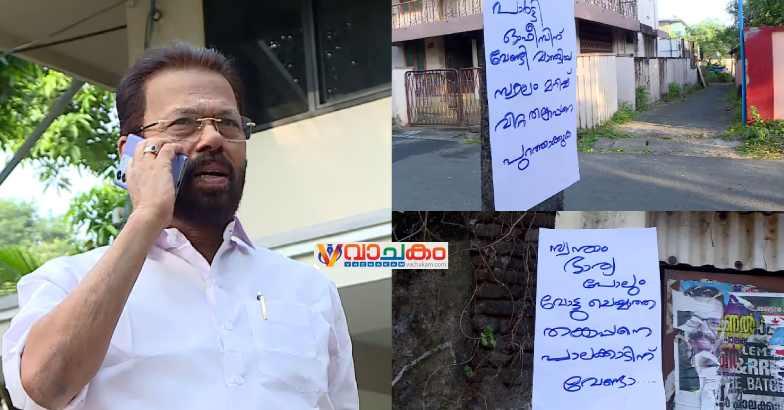 വസ്തുതാവിരുദ്ധമായ കാര്യങ്ങളാണ് പോസ്റ്ററിലുള്ളത്. എതിർ രാഷ്ട്രീയ ചേരിയിലുള്ളവരാണ് പോസ്റ്ററുകൾക്ക് പിന്നിൽ. രാഷ്ട്രീയ ഗുഢാലോചനയും സംശയിക്കുന്നു.
