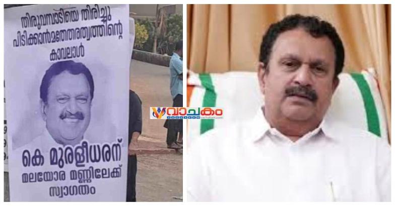 കോഴിക്കോട്: നിയമസഭാ തെരഞ്ഞെടുപ്പില് കോഴിക്കോട് തിരുവമ്പാടിയില് നിന്നും കെ മുരളീധരന് മത്സരിക്കണമെന്നാവശ്യപ്പെട്ട് പോസ്റ്റര്. 'കെ മുരളീധരന് മലയോര മണ്ണിലേക്ക് സ്വാഗതം' എന്ന പോസ്റ്ററാണ് തിരുവമ്പാടിയില് പ്രത്യക്ഷപ്പെട്ടത്.