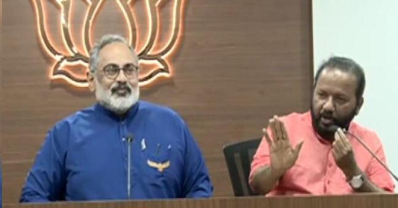 വാര്ത്താസമ്മേളനത്തില് അഴിമതി ആരോപണവുമായി ബന്ധപ്പെട്ട ചോദ്യങ്ങളില് കൃത്യമായ മറുപടി പറയാനാകാതെ വലഞ്ഞ് ബിജെപി സംസ്ഥാന അധ്യക്ഷന് രാജീവ് ചന്ദ്രശേഖര്. അധ്യക്ഷനെ രക്ഷിക്കാനിറങ്ങിയ ബിജെപി ജനറല് സെക്രട്ടറി എസ് സുരേഷ് മാധ്യമങ്ങളോട് കയര്ക്കുകയും ചെയ്തു. ഒടുവില് ചോദ്യം ചോദിച്ച മാധ്യമപ്രവര്ത്തകര്ക്ക് നേരെ മോശം ആംഗ്യം കാണിച്ചാണ് രാജീവ് ചന്ദ്രശേഖര് ഇറങ്ങിപ്പോയത്.