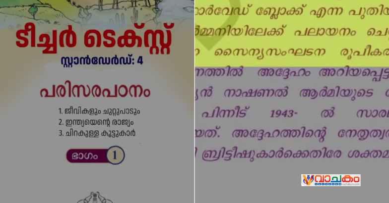 തിരുവനന്തപുരം: എസ്സിഇആര്ടിയുടെ കൈപ്പുസ്തകത്തിൽ ഗുരുതര പിഴവ്. സ്വാതന്ത്ര്യ സമര പോരാളി സുഭാഷ് ചന്ദ്രബോസ് ഇന്ത്യ വിട്ടത് ബ്രിട്ടനെ ഭയന്നിട്ടാണെന്നാണ് കൈപ്പുസ്തകത്തിൽ പരാമര്ശിച്ചത്.
