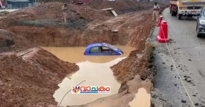 തൃശ്ശൂർ : ദേശീയപാതയിൽ നിർമ്മാണം നടക്കുന്ന മുരിങ്ങൂരിൽ അടിപ്പാത നിർമാണത്തിനായിയെടുത്ത കുഴിയിൽ കാർ മറിഞ്ഞ് അപകടം.
