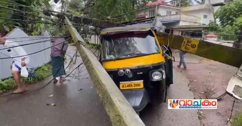 മിന്നൽ ചുഴലിയിൽ ഓടിക്കൊണ്ടിരുന്ന ഓട്ടോറിക്ഷക്ക് മുകളിലേക്ക് ഇലക്ട്രിക് പോസ്റ്റ് ഒടിഞ്ഞ് വീണു. തലനാരിഴക്കാണ് ഓട്ടോ ഡ്രൈവർ രക്ഷപ്പെട്ടത്.
