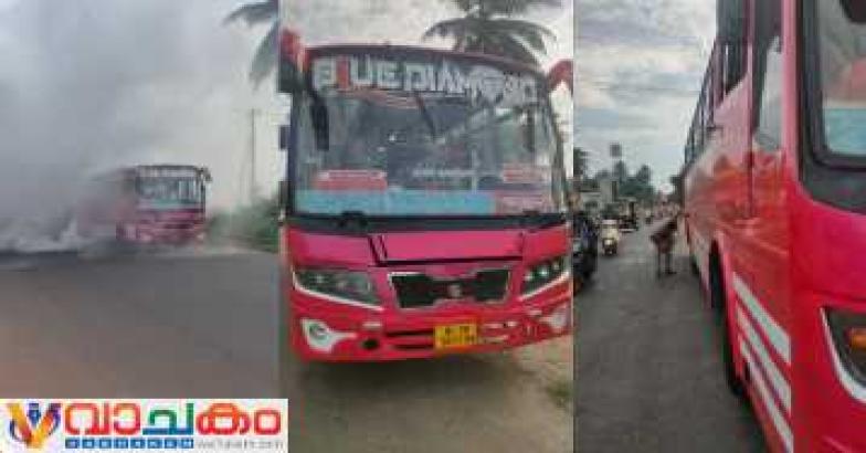 ഇന്ന് രാവിലെ 8.30 യോടെയായിരുന്നു സംഭവം ഉണ്ടായത്. ബസ്സിന്റെ ഡീസൽ പൈപ്പ് പൊട്ടിയതിനെ തുടർന്നാണ് വാഹനത്തിൽ നിന്നും പുക ഉയർന്നത് എന്നാണ് പുറത്തു വരുന്ന റിപ്പോർട്ട്. കോഴിക്കോട് നിന്നും തൃശൂരിലേക്ക് പോവുകയായിരുന്ന ബ്ലൂ ഡയമണ്ട് ബസ്സ് പാറേമ്പാടത്ത് എത്തിയപ്പോൾ ആയിരുന്നു അപകടം.