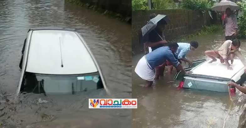 ഏറെ നേരത്തെ ശ്രമത്തിനൊടുവിൽ കാര് റിക്കവറി വാഹനം ഉപയോഗിച്ച് പുറത്തെടുത്തു. ഇന്ന് രാവിലെ ട്രിപ്പ് കഴിഞ്ഞ് തിരിച്ചുപോകുന്നതിനിടെയാണ് കാര് പേട്ടയിലെ കാനയിൽ വീണത്.