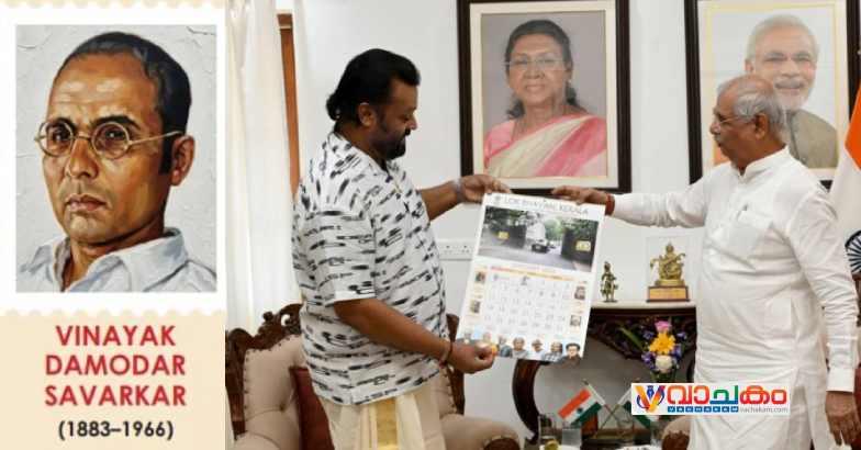ഫെബ്രുവരി മാസം അടയാളപ്പെടുത്തിയിരിക്കുന്ന പേജിലാണ് സവര്ക്കറുടെ ചിത്രം ഉപയോഗിച്ചിരിക്കുന്നത്. കലണ്ടര് കേന്ദ്രമന്ത്രി സുരേഷ് ഗോപിക്ക് നല്കിക്കൊണ്ട് ഗവര്ണര് രാജേന്ദ്ര വിശ്വനാഥ് അര്ലേക്കര് പ്രകാശനം ചെയ്തു.