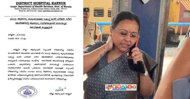 വീണാ ജോർജിന്റെ കഴുത്തിന് ക്ഷതം;   മെഡിക്കൽ ബുള്ളറ്റിൻ പുറത്ത്