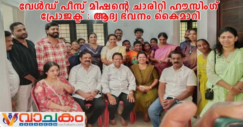 തിരുവനന്തപുരം: അഗതികളും അതി ദരിദ്രരുമായ വിധവകൾക്ക് കേരളത്തിലെ ഓരോ ജില്ലയിലും 10 വീടുകൾ വീതം കേരളമാകെ 140 വീടുകൾ പൂർത്തീകരിച്ച് നൽകുന്ന വേൾഡ് പീസ് മിഷൻ പീസ് ഹോം പ്രോജക്റ്റിന്റെ ആദ്യ ഭവനം ജൂലൈ 27ന് കാട്ടാക്കട തൂങ്ങാംപാറ മാവ് വിളയിൽ ജ്ഞാനാംബികയ്ക്ക് നൽകി താക്കോൽദാന കർമ്മം ഡോ.സണ്ണി സ്റ്റീഫൻ നിർവഹിച്ചു.