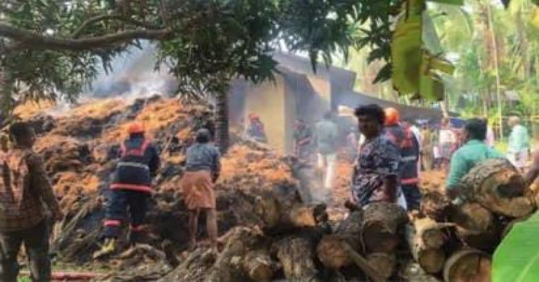 കമ്പനി പറമ്പിലെ തെങ്ങില് നിന്നും ഓല വൈദ്യുതി ലൈനില് തട്ടുകയും തീപ്പൊരിയുണ്ടാവുകയായിരുന്നു.ഇത് നിലത്ത് കൂട്ടിയിട്ട ചേരിയിലേക്ക് പടർന്ന് പിടിക്കുകയുമായിരുന്നു.