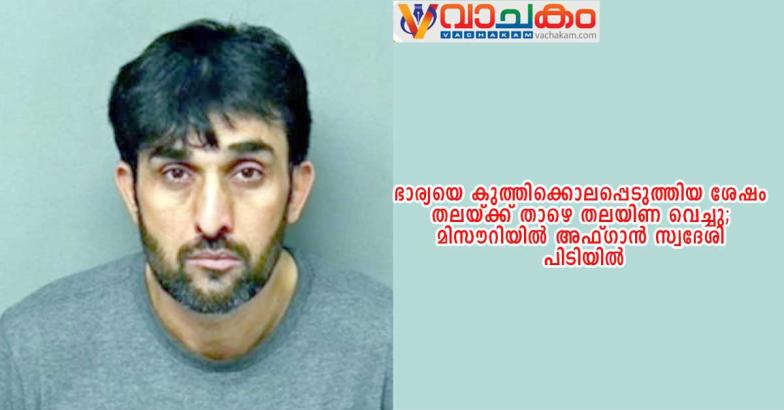 ഭാര്യയെ കുത്തിക്കൊലപ്പെടുത്തിയ ശേഷം തലയ്ക്ക് താഴെ തലയിണ വെച്ചു; മിസൗറിയിൽ അഫ്ഗാൻ സ്വദേശി പിടിയിൽ