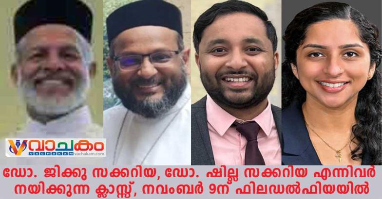 ഡോ. ജിക്കു സക്കറിയ, ഡോ. ഷില്ല സക്കറിയ എന്നിവർ നയിക്കുന്ന ക്ലാസ്സ്, നവംബർ 9ന് ഫിലഡൽഫിയയിൽ