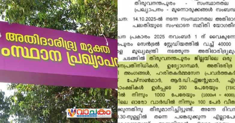 ഒരോ പഞ്ചായത്തിൽ നിന്നും 200 പേരെ പങ്കെടുപ്പിക്കണം: അതിദാരിദ്ര്യ മുക്ത പ്രഖ്യാപന സമ്മേളനത്തിന് ആളെക്കൂട്ടാൻ കത്തയച്ച് സര്‍ക്കാര്‍