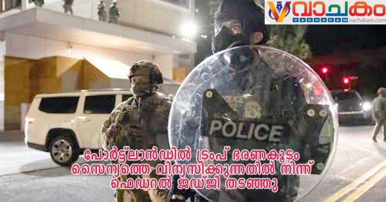 പോർട്ട്‌ലാൻഡ്, ഒറിഗോൺ : പ്രസിഡന്റ് ഡൊണാൾഡ് ട്രംപിന്റെ ഭരണകൂടം പോർട്ട്‌ലാൻഡിൽ നാഷണൽ ഗാർഡിനെ വിന്യസിക്കുന്നത് ഒറിഗോണിലെ ഒരു ഫെഡറൽ ജഡ്ജി താൽക്കാലികമായി തടഞ്ഞു.