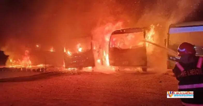 പുലർച്ചെ മൂന്ന് മണിയോടെയാണ് സംഭവം. സ്കൂൾ ഗ്രൗണ്ടിൽ പാർക്ക് ചെയ്ത ബസുകളാണ് കത്തിയത്. മൂന്നു ബസുകൾ പൂർണമായും ഒരു ബസ് ഭാഗികമായും കത്തിനശിച്ചു.