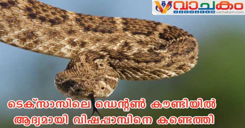 ഡെന്റൺ കൗണ്ടി: ടെക്സാസിലെ ഡെന്റൺ കൗണ്ടിയിൽ ചരിത്രത്തിലാദ്യമായി വെസ്റ്റേൺ ഡയമണ്ട്ബാക്ക് റാറ്റിൽസ്നേക്ക് എന്ന ഇനത്തിൽപ്പെട്ട വിഷപ്പാമ്പിനെ കണ്ടെത്തി. ഈ മേഖലയിൽ ഈ പാമ്പിന്റെ സാന്നിധ്യം ഔദ്യോഗികമായി രേഖപ്പെടുത്തുന്നത് ഇതാദ്യമായാണ്. ആർഗൈലിലെ ഒരു വീടിന്റെ ഗാരേജിലാണ് പാമ്പിനെ കണ്ടത്.
