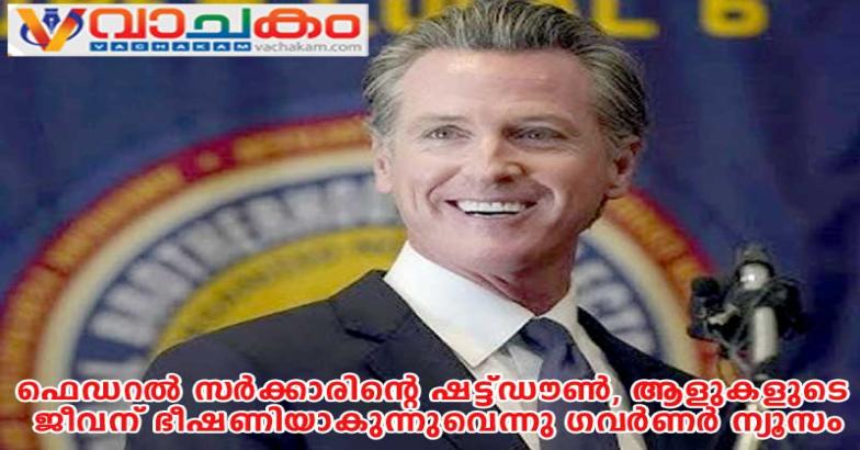 വാഷിംഗ്ടൺ ഡി.സി.: ഫെഡറൽ സർക്കാരിന്റെ ഷട്ട്ഡൗൺ മൂലം ലക്ഷക്കണക്കിന് താഴ്ന്ന വരുമാനമുള്ള കാലിഫോർണിയക്കാർക്ക് അടുത്ത മാസം ഭക്ഷ്യസഹായം ലഭിക്കില്ലെന്നു ഗവർണർ ഗാവിൻ ന്യൂസം മുന്നറിയിപ്പ് നൽകി.