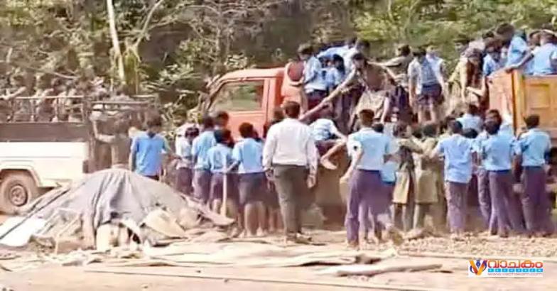 ബെൽത്തങ്ങാടി താലൂക്കിലെ ബലഞ്ജെ ഗവ. അപ്ഗ്രേഡ് ഹയർ പ്രൈമറി സ്കൂളിലാണ് സംഭവം നടന്നത്.ഈ മാസം ഒമ്പതിന് ഇൻ-ചാർജ് ഹെഡ്മാസ്റ്റർ കിരണിന്റെ നേതൃത്വത്തിൽ വിദ്യാർഥികളെ പിക്അപ് വാഹനത്തിലും ടിപ്പർ ലോറിയിലും കൊണ്ടുപോയി അതേ വാഹനങ്ങളിൽതന്നെ തിരികെ എത്തിക്കുകയായിരുന്നു.